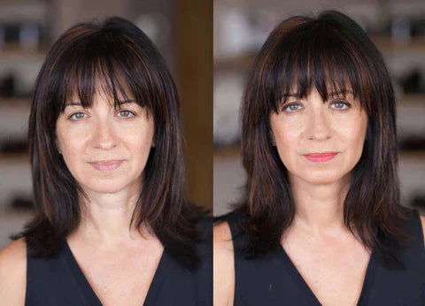 Une fois le fond de teint appliqué et légèrement travaillé sur la peau, la teinte s'adaptera à la carnation de votre peau afin de vous fournir un teint uniforme et sans imperfections. La couleur du fond de teint sera exactement la même que votre couleur de peau naturelle !